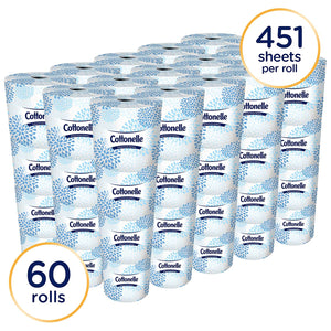 Kleenex Cottonelle Standard Toilet Paper, 2-Ply White Toilet Tissue, 4" x 4.1" Sheet Size, 451 Sheets per Roll, 60 Rolls per Carton.